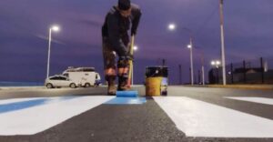 Río Gallegos: pintan sendas peatonales con los colores de Argentina