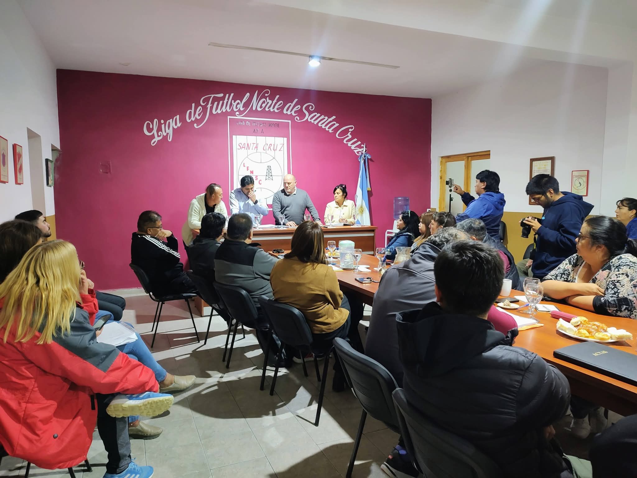Hernan Elorrieta, El lunes 20 de abril, en Caleta Olivia, mantuvimos una reunión de trabajo junto a la Subsecretaria de Interior, Marcela Oviedo, con el presidente de la Liga de Fútbol Norte, Javier Navarrete; el secretario de Deportes de la Municipalidad, David Jones; y representantes de los clubes que forman parte de la Liga Norte.