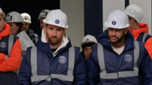 Jugadores y cuerpo técnico del Paris Saint-Germain visitaron este jueves el futuro centro de entrenamiento del club. Para la ocasión, los futbolistas se vistieron de maestro mayor de obra y todas las miradas se posaron en Lionel Messi. Con un casco blanco y un mono de trabajo con los colores del equipo francés, la Pulga conoció las nuevas instalaciones de un complejo que costó casi 300 millones de euros, según publica TN.